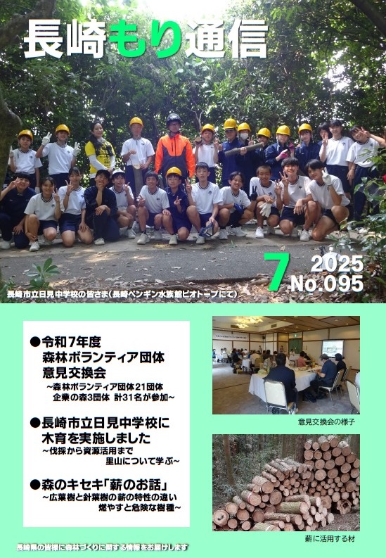 2025年8月8日 / 最終更新日時 : 2025年8月8日 nagasaki-shinrin_admin 長崎もり通信 長崎もり通信095号 【目次】 特集・令和7年度 森林ボランティア団体意見交換会 ・長崎市立日見中学校に木育を実施しました ・森のキセキ「薪のお話」 ・センターからのお知らせ 長崎もり通信095ダウンロード