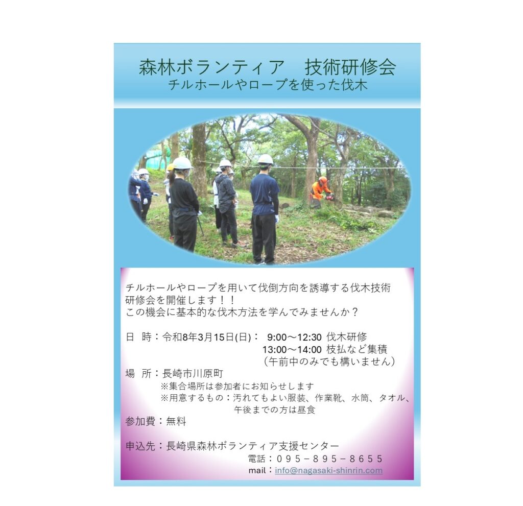 山の整備に興味のある方、初心者の方、是非、下のチラシをご覧になってセンターまでご応募ください。