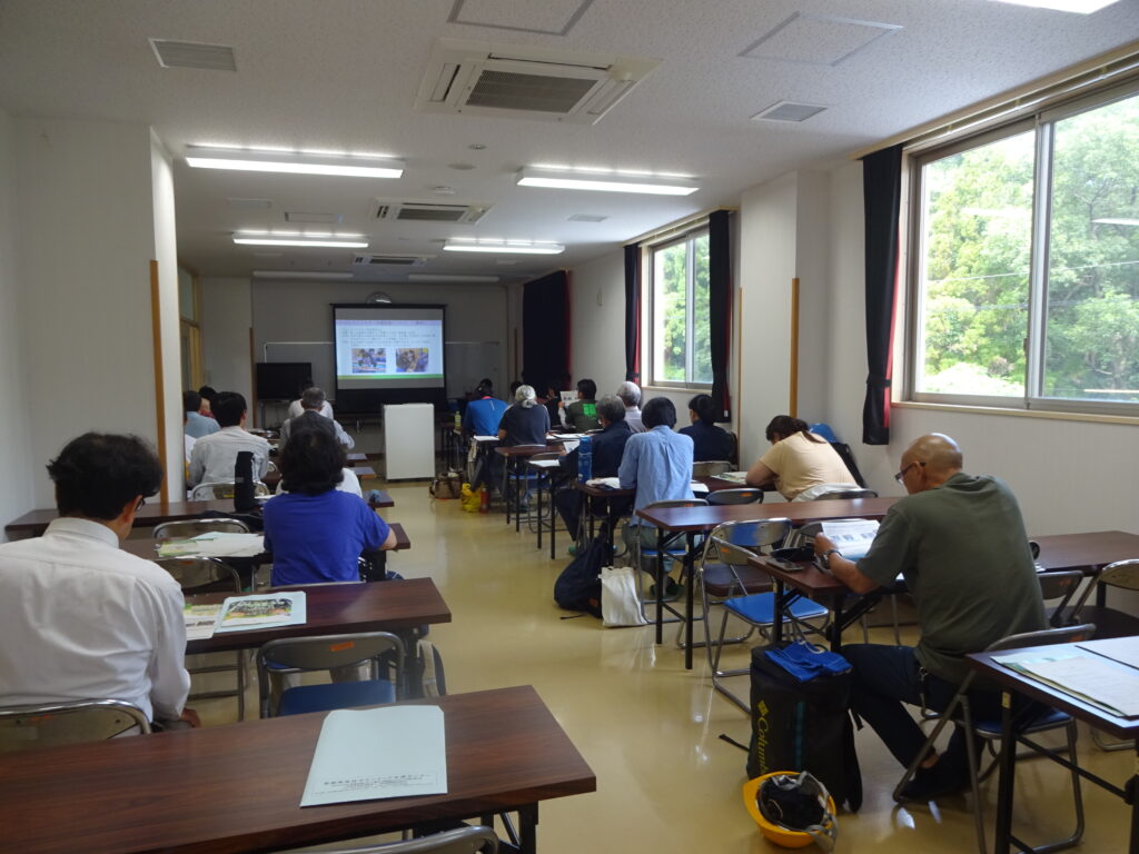 午前中は登録の為の育成研修を行い、フォレストマスターとしての派遣の流れや実施における注意点、森林環境教育について説明をしました。